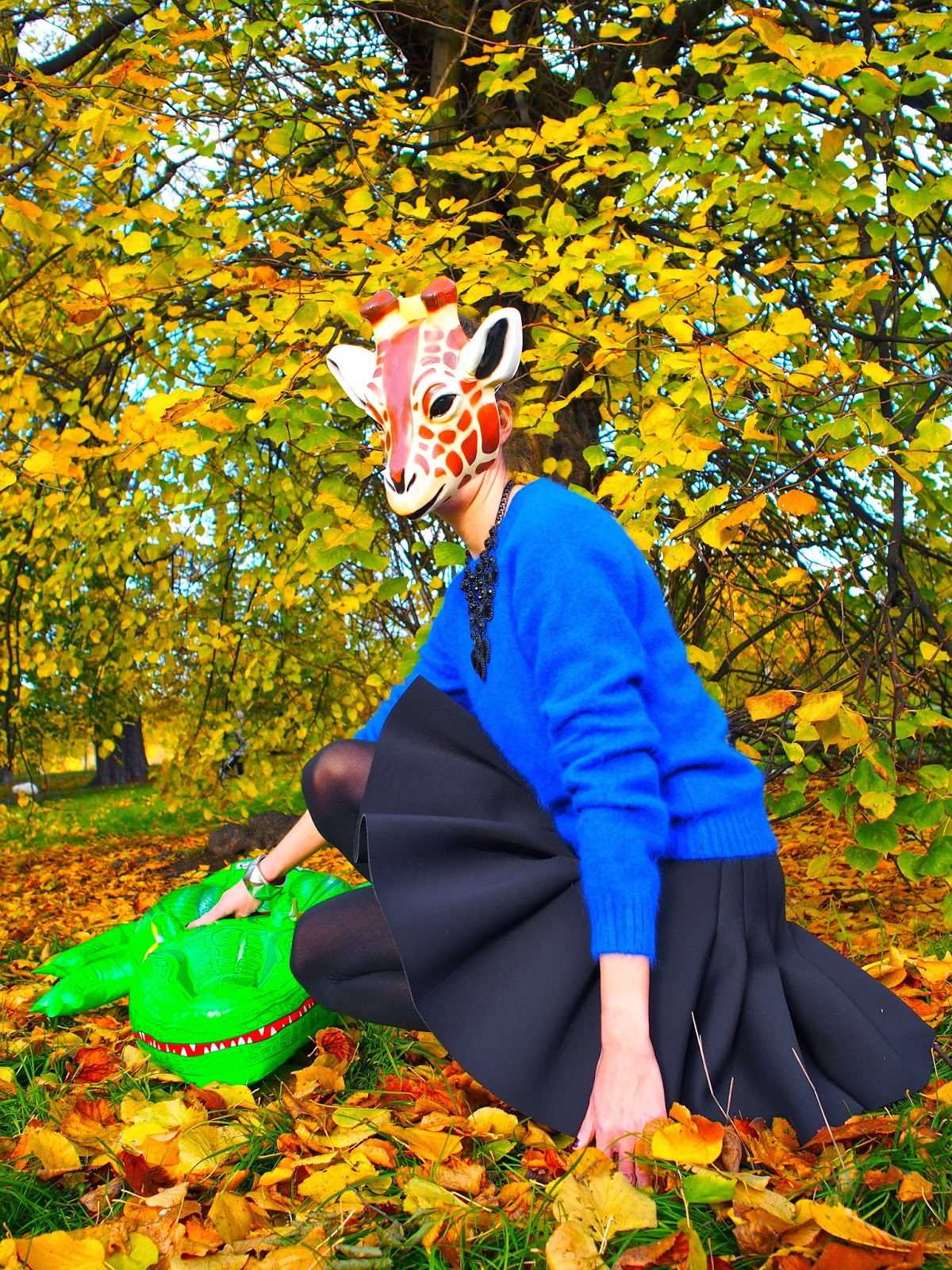 I've always had a secret fascination for colourful inflatable animals. Every excuse is good to spend a penny on it... to my children's joy. Therefore, I was overly excited when I came across this lovely plastic green monster on a hot and sticky summer afternoon. I could immediately picture it strolling with Sophie in the yellow and red fallen leaves of our beautiful London parks this fall. But how on earth would I be able to hide it from my three greedy little monsters who could not wait to ride it in the pool? I do not know how it kept systematically and periodically reappearing by the side of the pool over the summer however well I hid it. Although, I must admit that my eldest is a very persistent nosey parker...